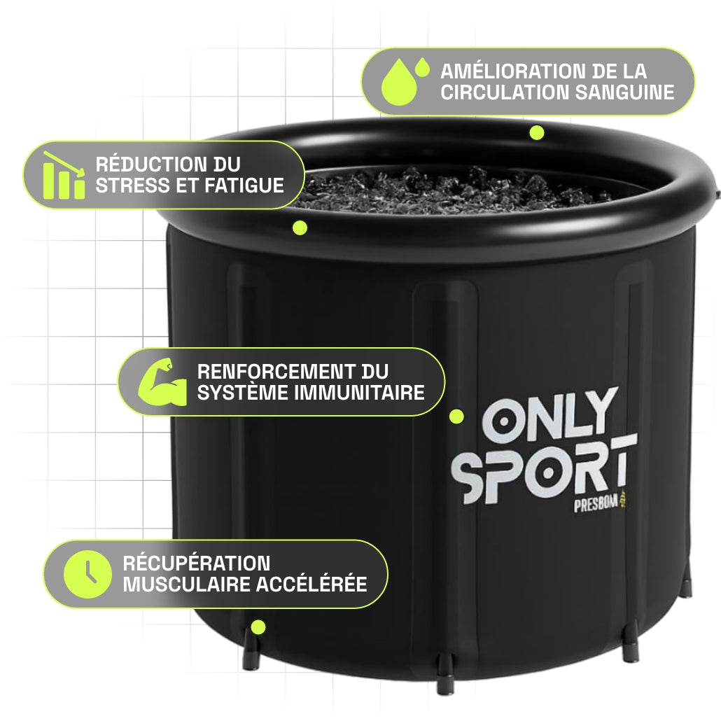 Le Bain Froid Individuel de Récupération est une solution de cryothérapie conçue pour accélérer la récupération physique après un effort intense. En s'immergeant dans une eau glacée, le corps bénéficie d'un choc thermique naturel qui réduit les inflammations, apaise les douleurs musculaires, stimule la circulation sanguine et favorise un meilleur sommeil.